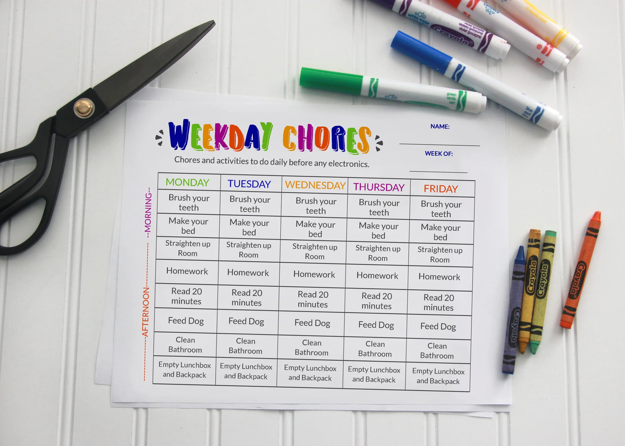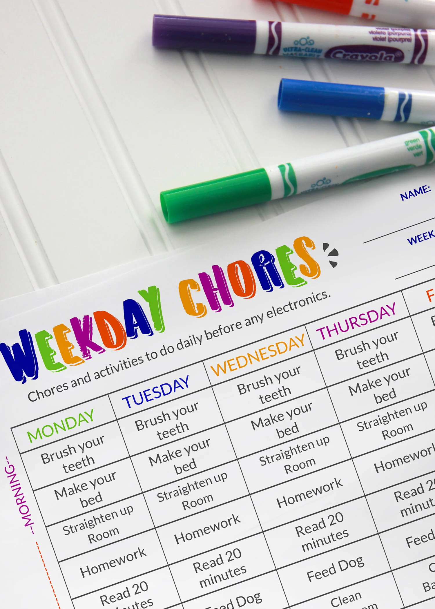 FREE EDITABLE KID'S WEEKDAY CHORE CHART